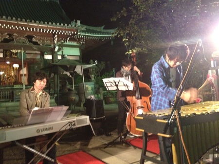 横浜妙蓮寺での無料野外ライブ「お寺JAZZ」での宅間善之トリオ(リンヘイテツ 川本悠自)